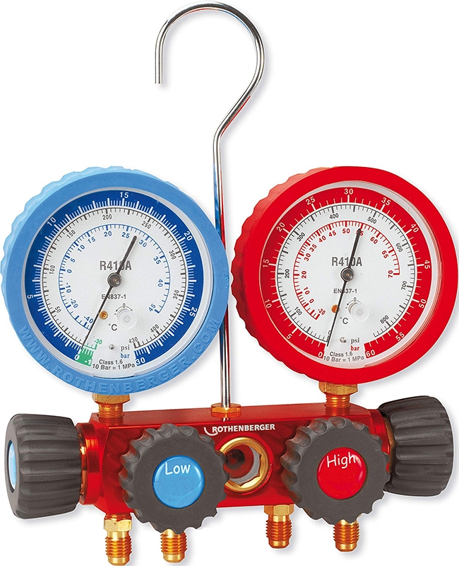 Преимущества четырехпозиционного аналогового манометрического коллектора для хладагентов R410A, R32 Rothenberger 5/16 SAE: