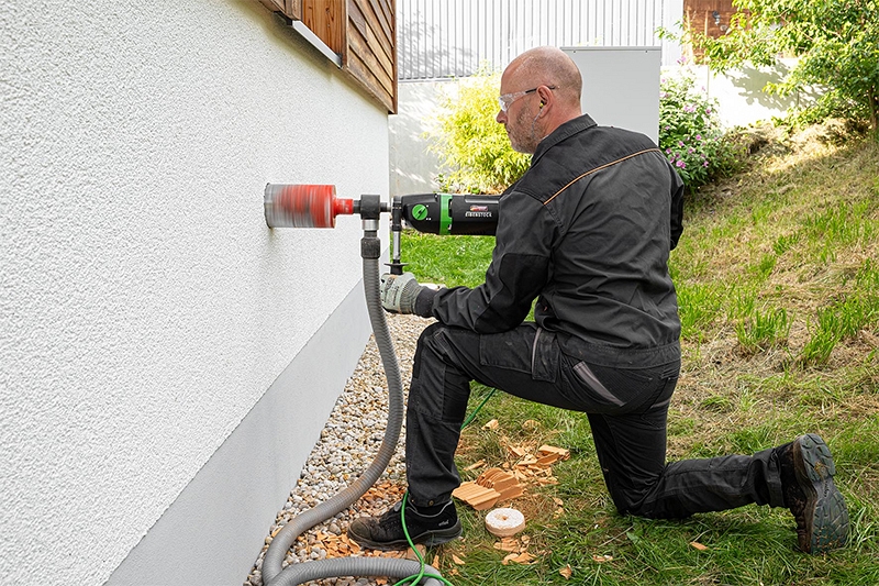 Дрель для сухого алмазного сверления Eibenstock EHD 2002 S (Айбеншток ЕХД 2002 С) предназначена для бурения отверстий Ø 32 – 132 мм в известковом силикатном кирпиче, каменной кладке, клинкерном кирпиче, кирпиче и других абразивных материалах; создания отверстий в стенах и потолках в системах водоснабжения, отопления и вентиляции; вырезания отверстий для электромонтажных коробок, например, для выключателей и распределительных коробок.
