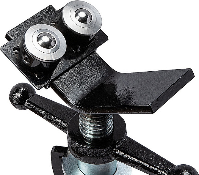 Двойная роликовая насадка для трубных опор Remmers Atlant 1/8-12 (Реммерс Атлант 1/8-12) на скользящей площадке устанавливается с 2-х сторон V-образной опоры трубных стоек и фиксируются барашковым винтом. Направляющий ролик используется для снижения момента трения с возможностью приложения минимальных усилий при перемещении по опоре или вращении труб. Для подстройки под диаметр трубы площадка с роликами имеет возможность перемещения и фиксации в необходимом положении. Как правило, трубная опора используется совместно с резьбонарезными станками, желобонакатчиками, электрическими труборезами и т.д.