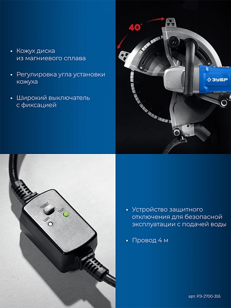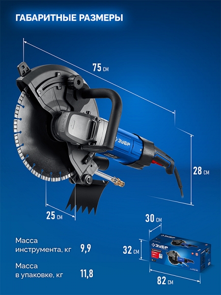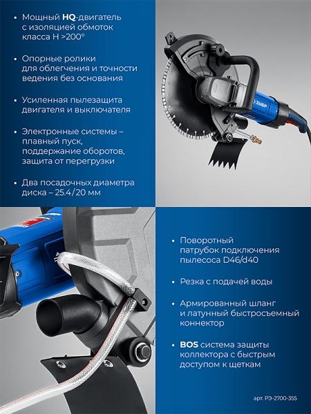 Преимущества электрического резчика по бетону Зубр Профессионал РЭ-2700-355: