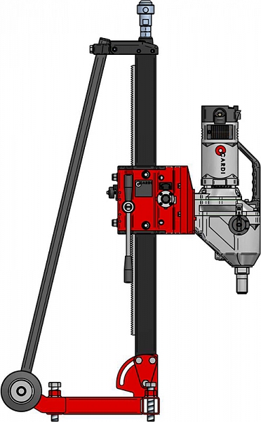 Установка алмазного бурения Cardi 501 (Карди 501) предназначена для сверления отверстий Ø 25 – 500 мм в бетоне, железобетоне, асфальте, кирпиче под углом 0° – 75° с обязательной подачей воды.
